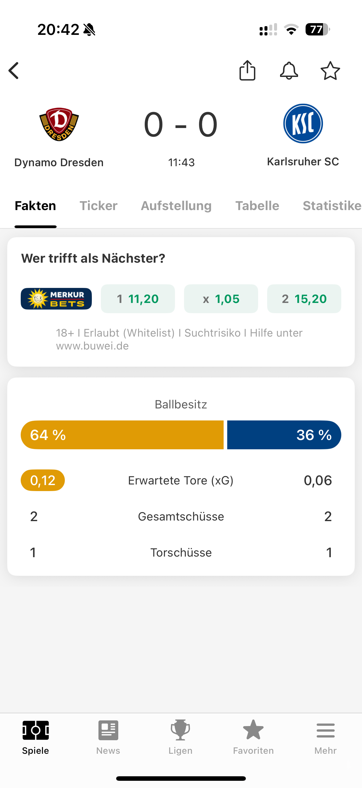 Dynamo ging früh in Führung, KSC gleicht aus in der 11. Minute