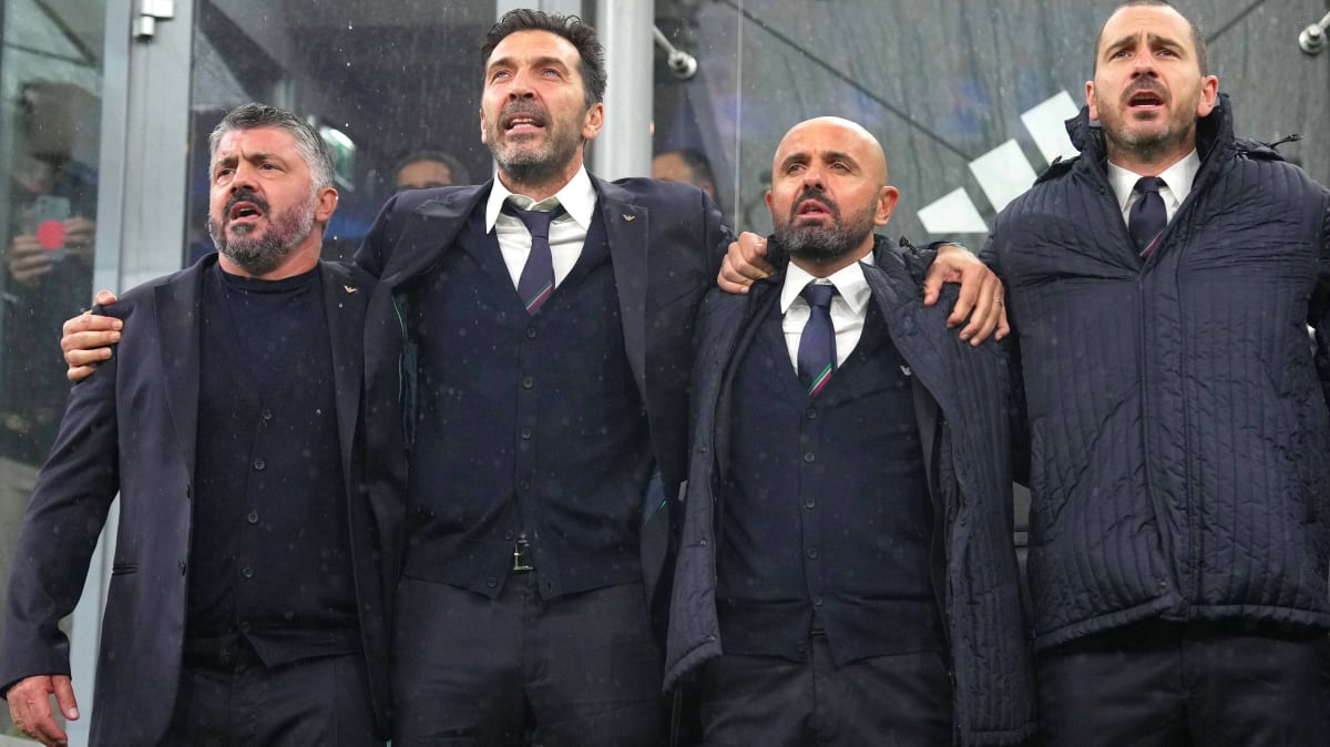 G. Donnarumma - Mancini, Bastoni, Calafiori - Politano, Barella, Locatelli, Tonali, Dimarco - Kean, Retegui