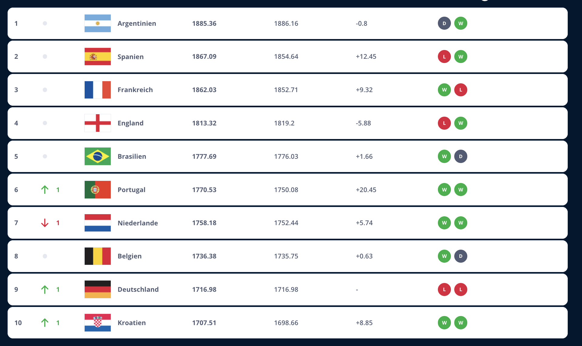 Am Donnerstag hat die FIFA ihre neue Weltrangliste veröffentlicht: Trotz zweier Nations-League-Niederlagen rutschte Deutschland auf Rang neun vor. Italien verlor derweil seine Platzierung in der Top 10.