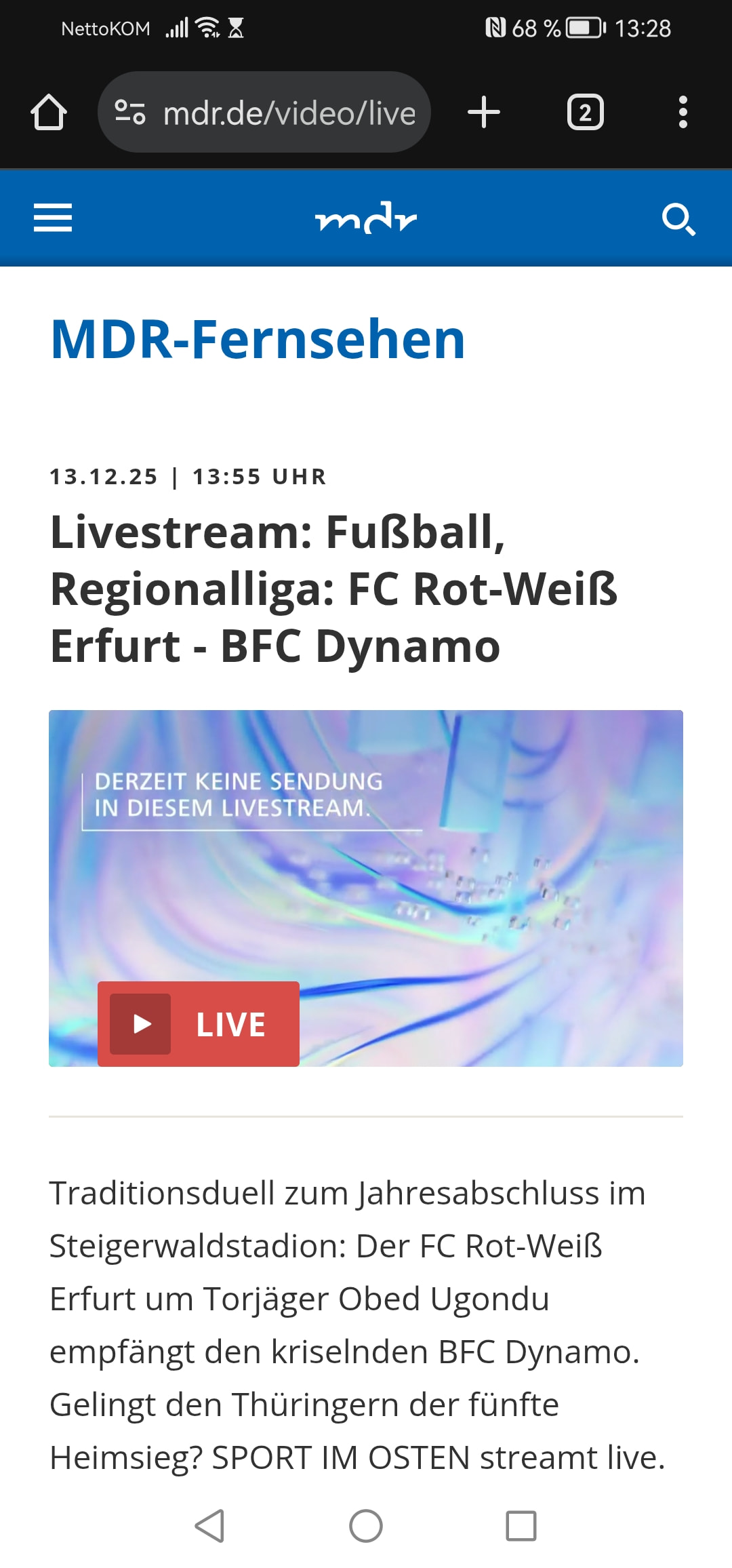 Jetzt steht es wieder drin. Ich bin doch nicht besoffen!??? Videotext steht 14 Uhr Duisburg - Aue.
