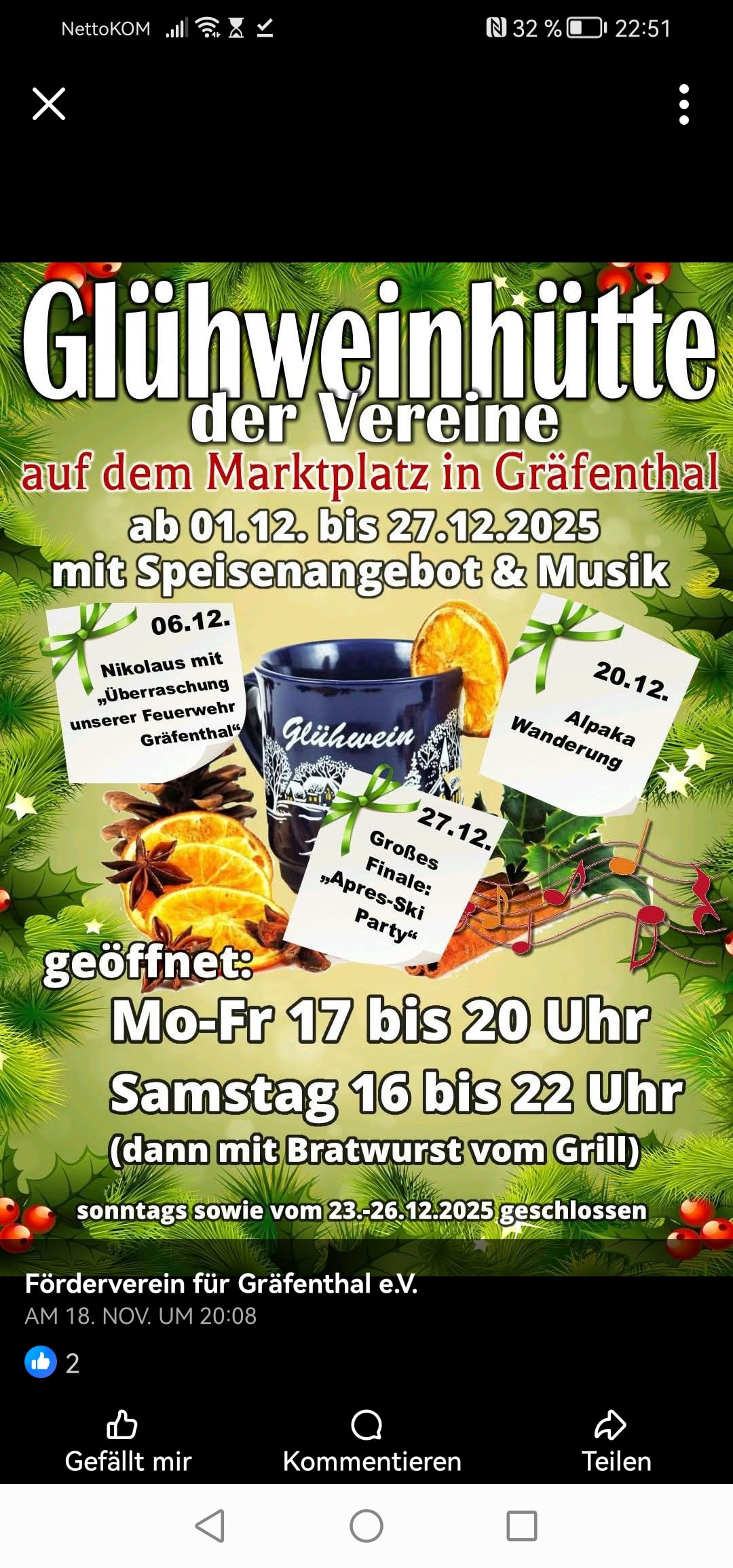 Das der Glühwein dort 2 Euro kostet, mit Schuss 3, hätte man mir vorher mal sagen müssen. Das ziehe ich jetzt bis zum 27. durch, bis die Hütte weg ist.