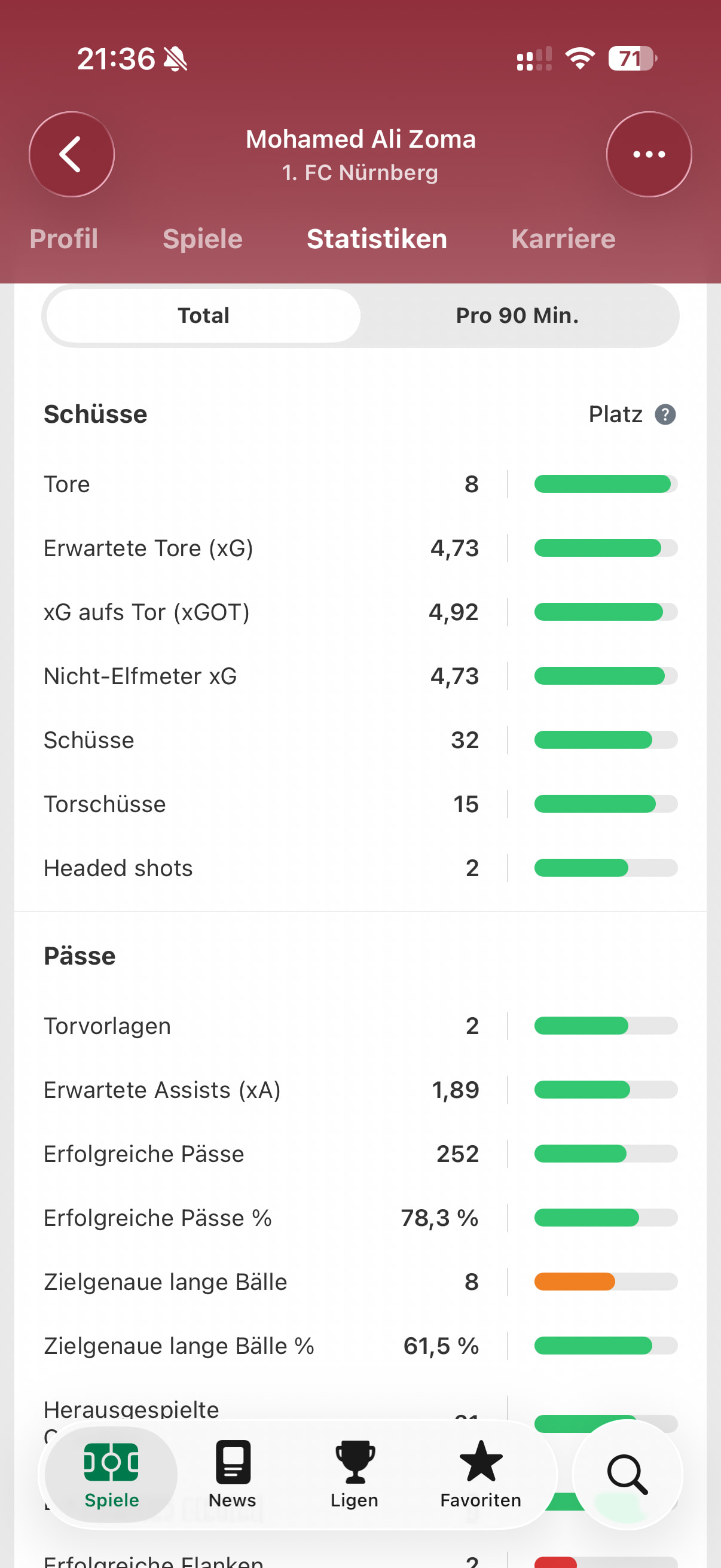 Was mich aber aufregt, die Rückwärtsbewegung. Gab eine Szene gegen Ende der zweiten Halbzeit vor dem Doppelwechsel, als er den Ball verliert in einer brenzligen Situation und nicht mitläuft. Das geht nicht.