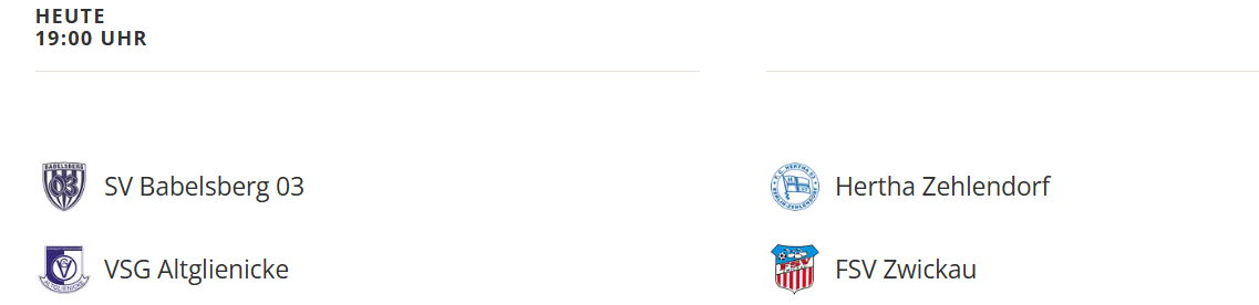Gestern Babelsberg - Altglienicke 1:2, Chemie Leipzig - BFC Dynamo 2:0 und Zehlendorf - Zwickau 0:1