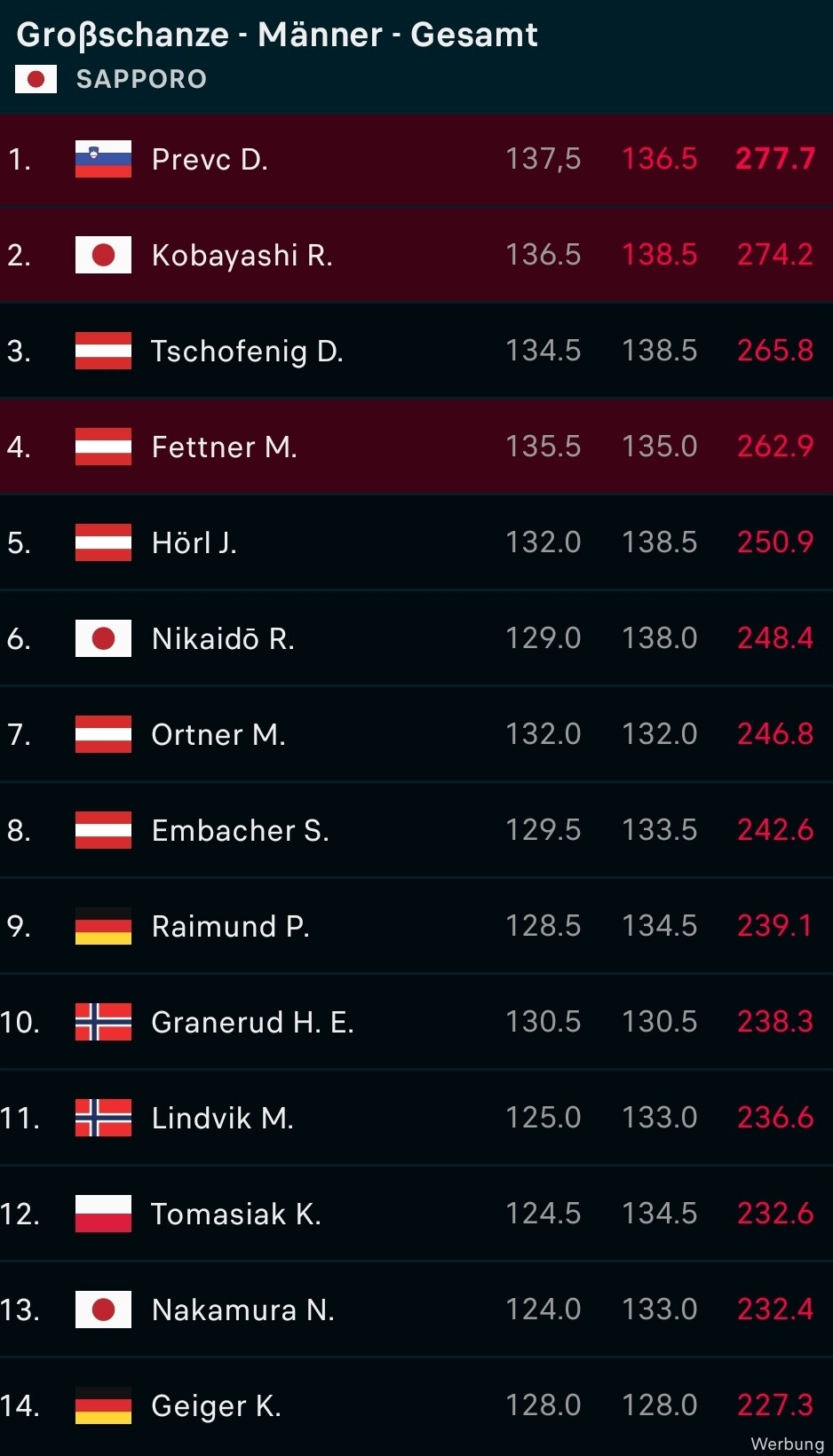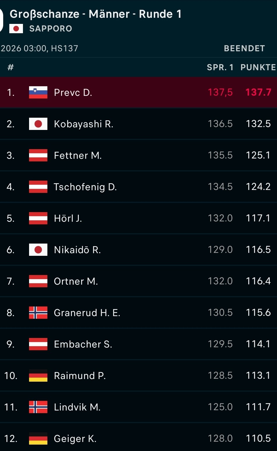 Inzwischen wurde indirekt bestätigt, dass Geiger nicht dabei sein wird. Bitter! Wellinger halt nur dabei weil er in einem Chaos Wettbewerb mit einem Durchgang 7. Wurde