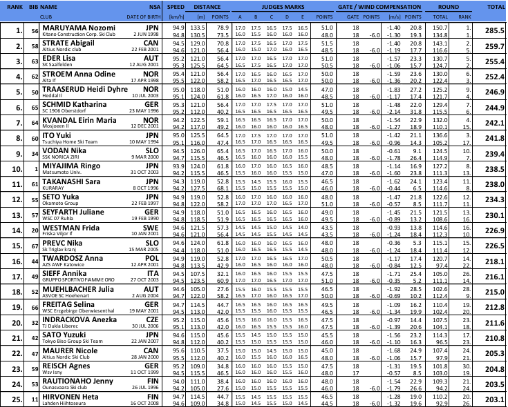Ein vollkommen souveräner Sieg der Japanerin Maruyama. Die deutschen eher durchwachsen. Auch Nika Prevc nur im Mittelfeld.