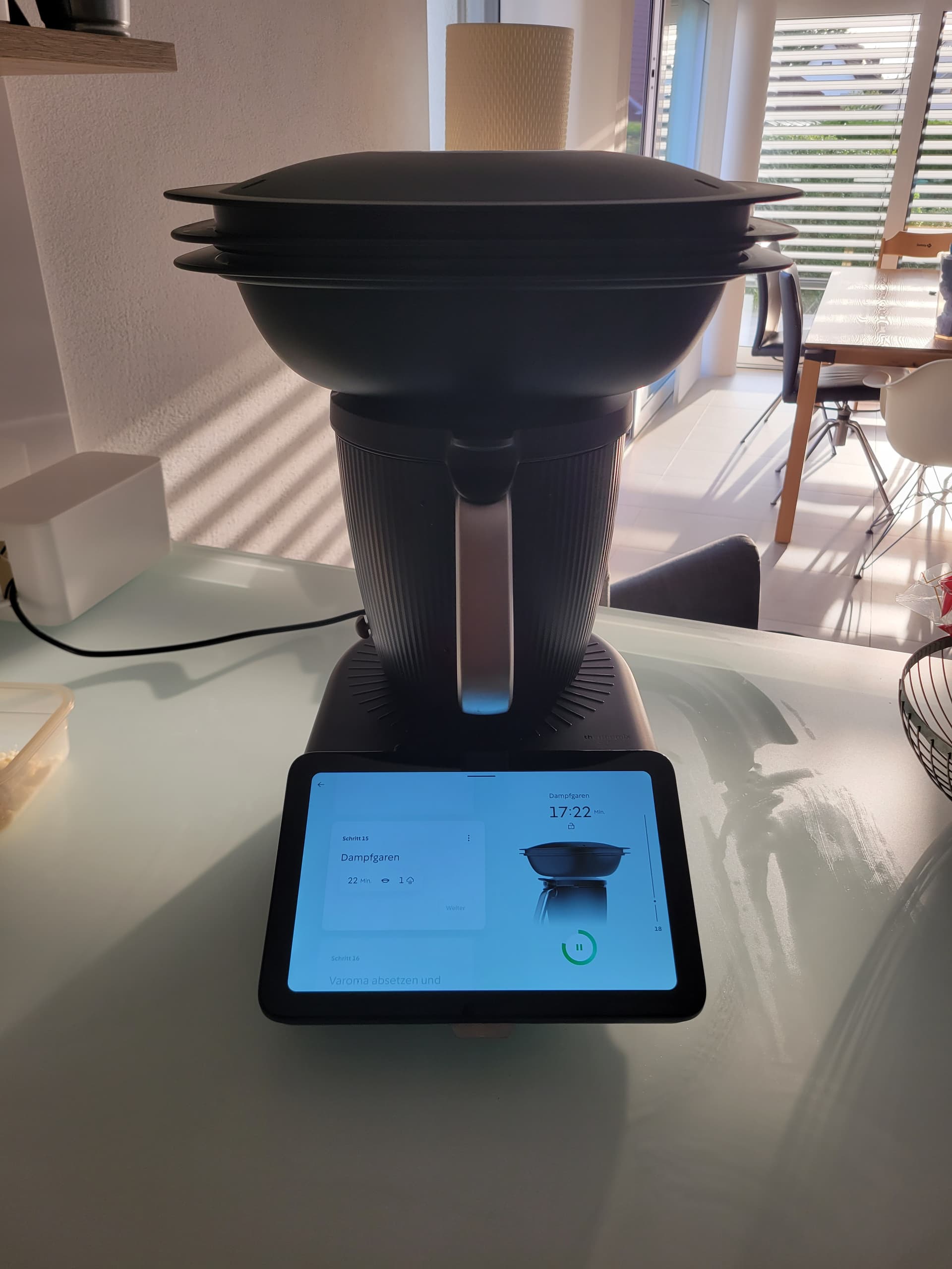 Der neue Thermomix (hier mit Dampfaufsatz).