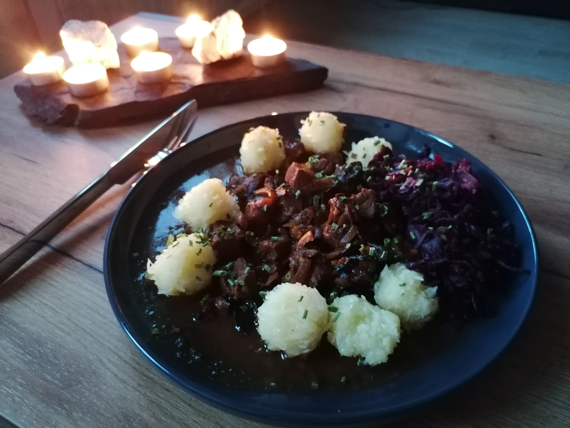 Erstaunlicherweise war sogar das Gulasch super, obwohl ich die Kochzeit mit einer Stunde sehr kurz fand und daher skeptisch war…