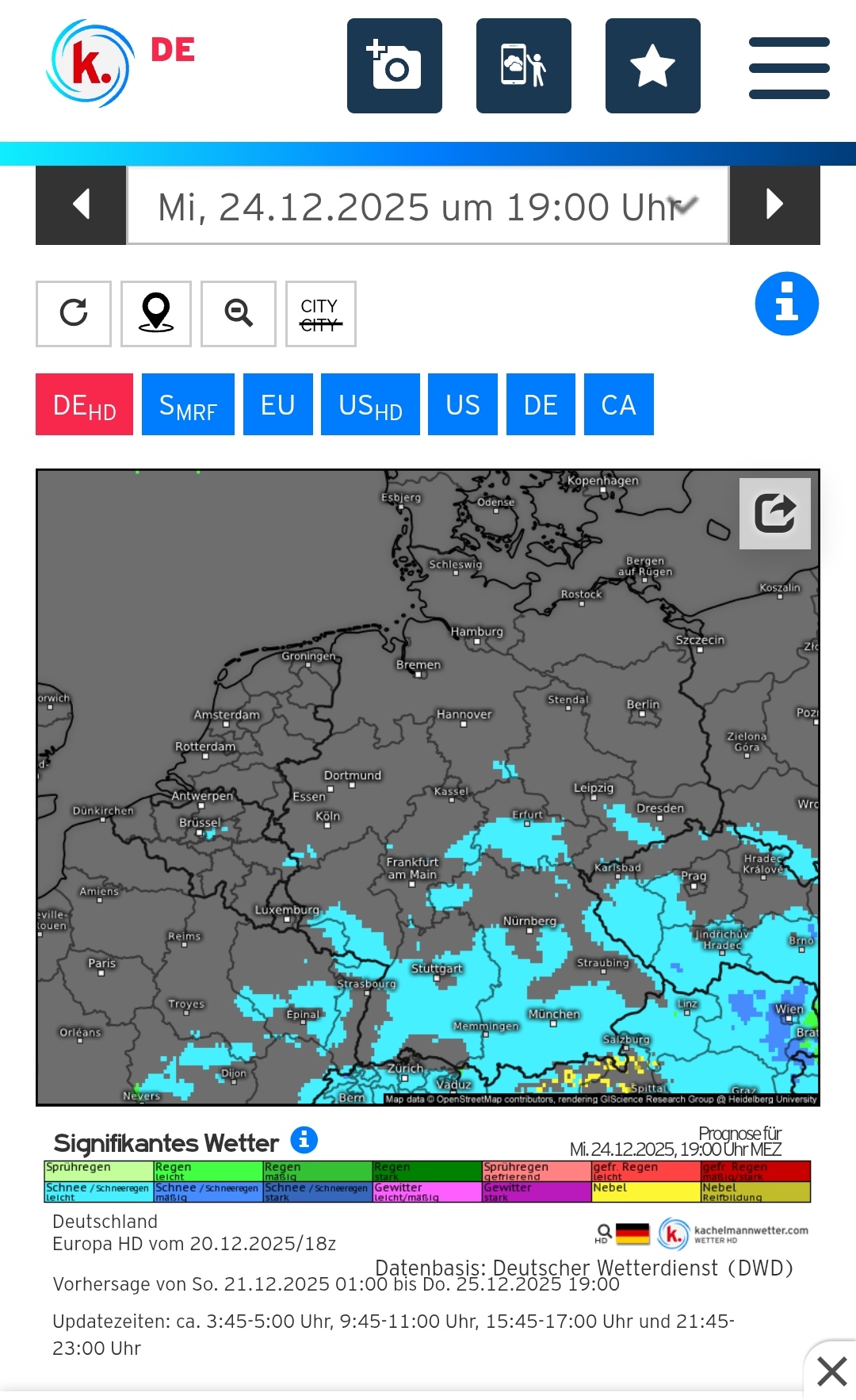 Das ganze Gegenteil ist ECMWF. Hier 2, 3 cm in höheren Lagen und ein bissl Puderzucker in niedrigeren Lagen in Bayern und Baden-Württemberg.